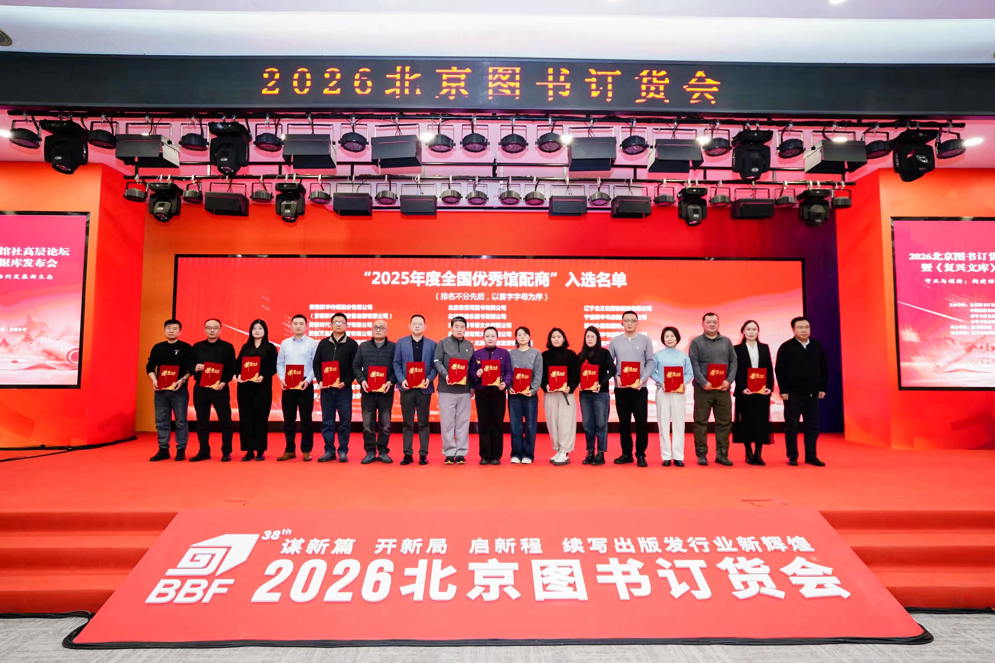 论坛现场,备受关注的“2025年度全国优秀馆配商征集活动”入选名单正式揭晓。凭借在馆配领域的深厚积淀、专业服务能力与良好行业口碑,北京京城新安文化传媒有限公司成功跻身榜单,荣膺“2025年度全国优秀馆配商”称号,公司代表受邀出席典礼并登台领奖。